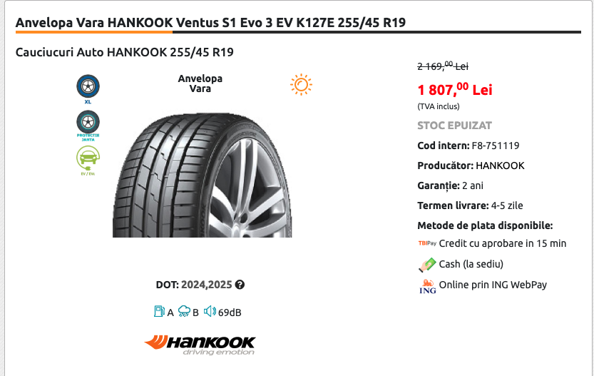 Astea sunt cele pe care le vand https://www.anvelocors.ro/anvelope-auto-vara-hankook-ventus-s1-evo-3-ev-k127e-255-45r19-104w-6