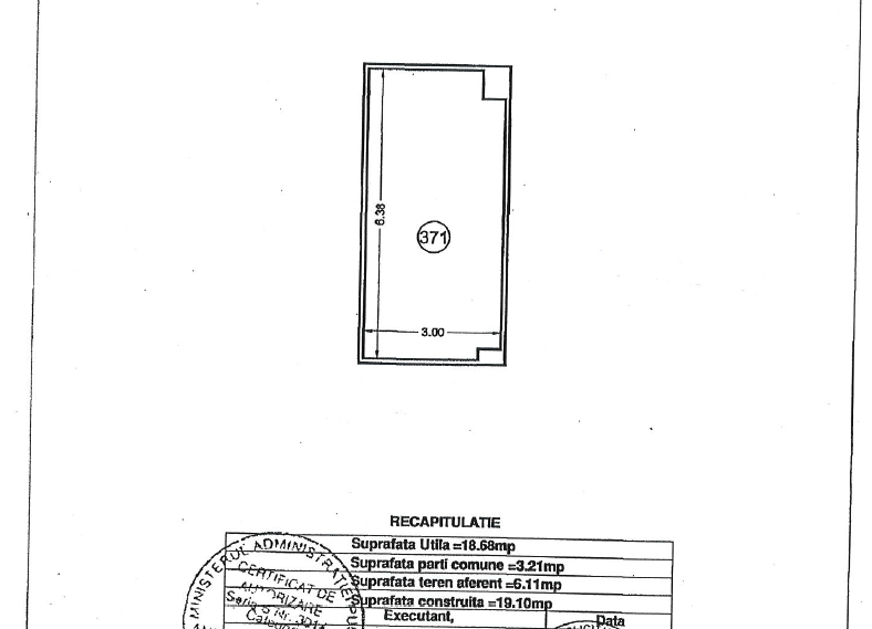 Locul de parcare are 19 mp construiti si are bransament de curent electric trifazat cu o putere instalata de 25kw.
